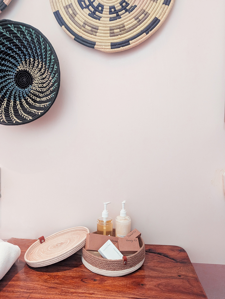 Sink into our concrete bench with plush cushion seats as you sip on handcrafted cocktails. Whether gathering with friends, enjoying a moment of solitude, or getting some work done, our lounge is designed to be your personal sanctuary throughout your stay.