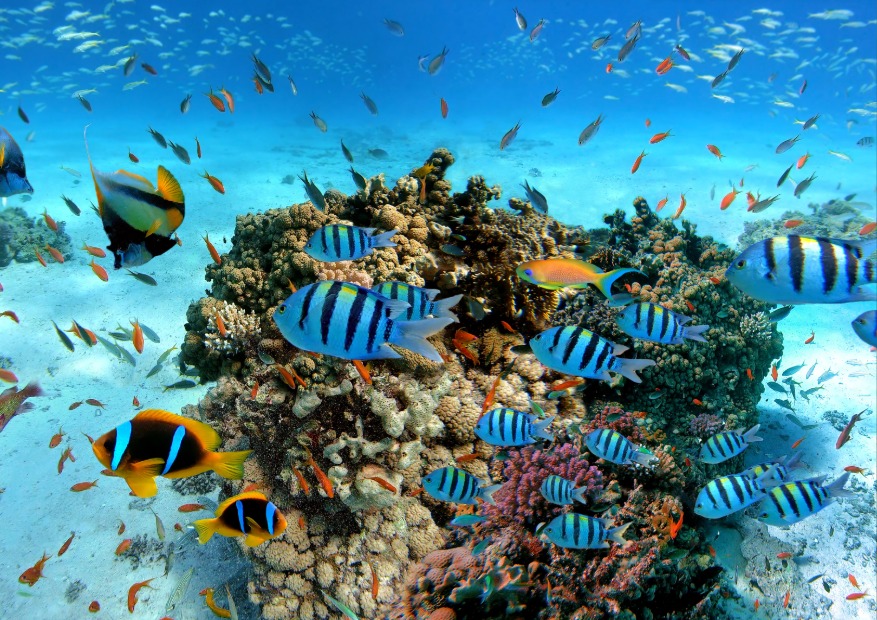 • Schools of colourful reef fish