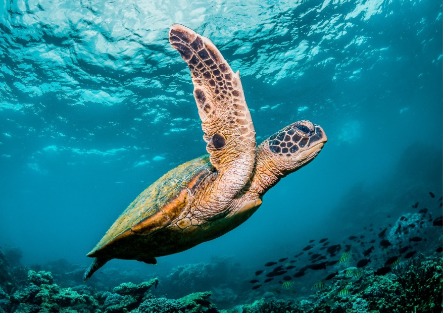 • Green and hawksbill turtles
